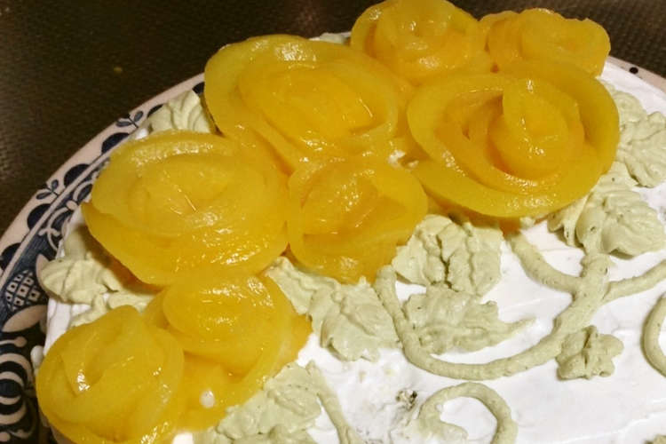 黄桃で大輪のバラケーキ レシピ 作り方 By おかぁしゃん クックパッド